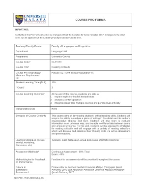 Contents of this Pro Forma shall not be changed without the Senate’s for items indicated with *. Changes to the other