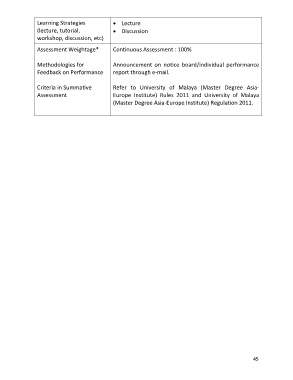 Criteria in Summative Refer to University of Malaya (Master Degree Asia-