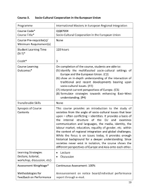 Course Title* Socio-Cultural Cooperation in the European Union