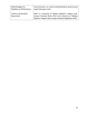 Criteria in Summative Refer to University of Malaya (Master’s Degree Asia-