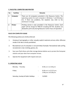 2 Printer Printing service is also provided in the Resource Centre. Each