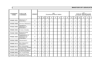 TITLE OF COURSES Research in Education Survey Research Qualitative Research in Education Future Studies Experimental Research Applications of Statistics for Research in Education Dissertation Art Education Research Art Education Curriculum Design Issues and Current Practices in Art Education Art Psy chology Social Science Education L