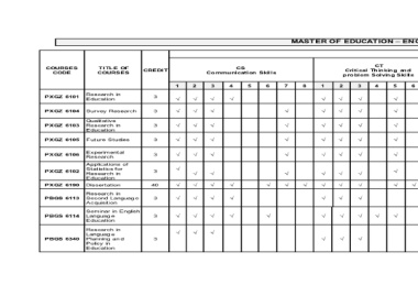 TITLE OF COURSES Research in Education Survey Research Qualitative Research in Education Future Studies Experimental Research Applications of Statistics for Research in Education Dissertation Research in Second Languag e Acquisition Seminar in English Languag e Education Research in Languag e Planning an d Policy in Education