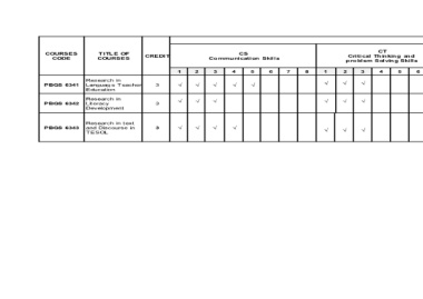 nd EM Life Long LS KK TS Professiona l Learning and Leadership Ski lls Entrepreneuria Ski lls l Team Work Skil ls Ethics and Moral Informati on Management 4 3 2 1 3 2 1 4 3 2 1 3 2 1 5 4 3 2 1 7 6 5 √ √ √ √