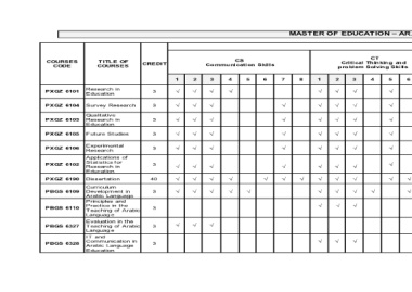 TITLE OF COURSES Research in Education Survey Research Qualitative Research in Education Future Studies Experimental Research Applications of Statistics for Research in Education Dissertation Curriculum Development in Arabic Language Principles and Practice in the Teaching of Arabic Languag e Evaluation in the Teaching of Arabic Langu