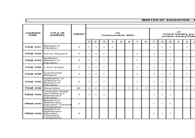 TITLE OF COURSES Research in Education Survey Research Qualitative Research in Education Future Studies Experimental Research Applications of Statistics for Research in Education Dissertation Curriculum Design and Plannin g in Mathematics Education Research in Mathematics Education: Practical Perspectives Research in Mathematics