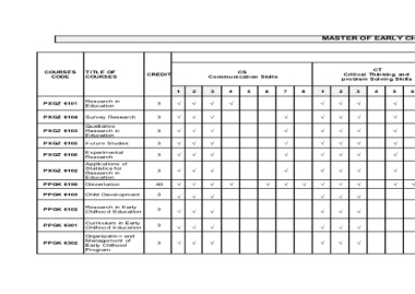 TITLE OF COURSES Research in Education Survey Research Qualitative Research in Education Future Studies Experimental Research Applications of Statistics for Research in Education Dissertation Child Devel opment Research in Early Chilhoo d Education Curriculum in Early Chilhoo d Education Organizatio n and Management of Early Chilhood