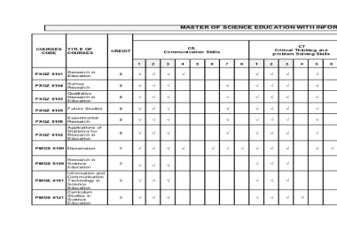 TITLE OF COURSES Research in Education Survey Research Qualitative Research in Education Future Studies Experimental Research Applications of Statistics for Research in Education Dissertation Research in Science Education Information and Communication Technology in Science Education Curriculum Studies in Science Education