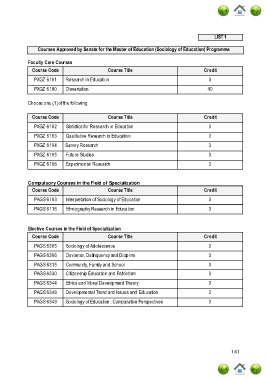 Courses Approved by Senate for the Master of Education (Sociology of Education) Programme
