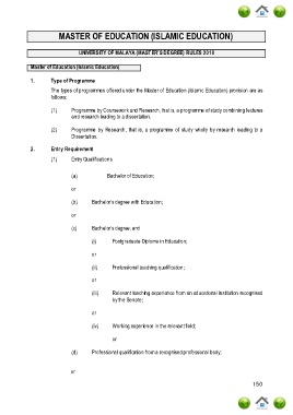 The types of programmes offered under the Master of Education (Islamic Education) provision are as
