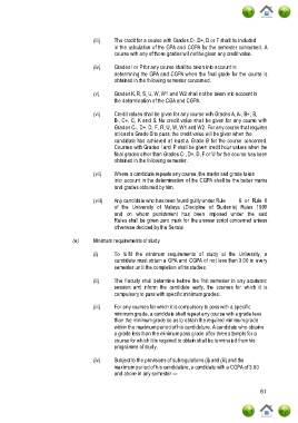 (i) To fulfil the minimum requirements of study at the University, a