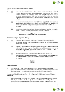 52. The Senate has the power to make, repeal or amend any regulations governing any degree