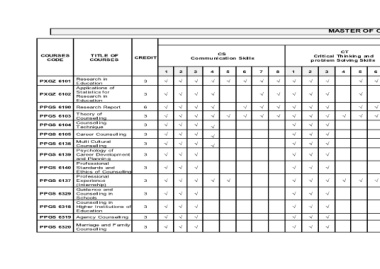 TITLE OF COURSES Research in Education Applications of Statistics for Research in Education Research Report Theory of Counsell ing Counsell ing Technique Career Counsell ing Multi Cultural Counsell ing Psychology of Career Development and Plannin g Professional Standards and Ethics of Counselling Professional Experience (Internship) Gui