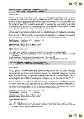 penekanan kepada elemen-elemen dalam proses dan perkembangan kelompok. Matlamat utama kursus adalah untuk