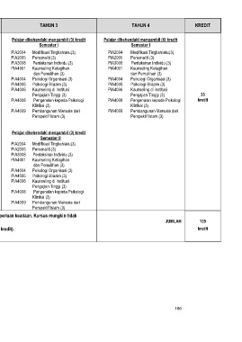 KURSUS TAHUN 1 TAHUN 2 TAHUN 3 TAHUN 4 KREDIT