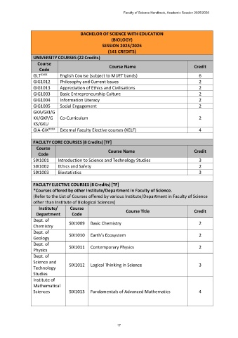 (Refer to the List of Courses offered by various Institute/Department in Faculty of Science