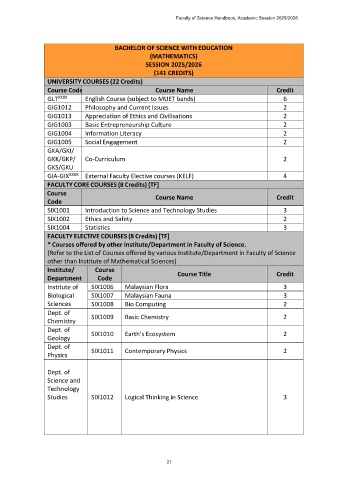 (Refer to the List of Courses offered by various Institute/Department in Faculty of Science