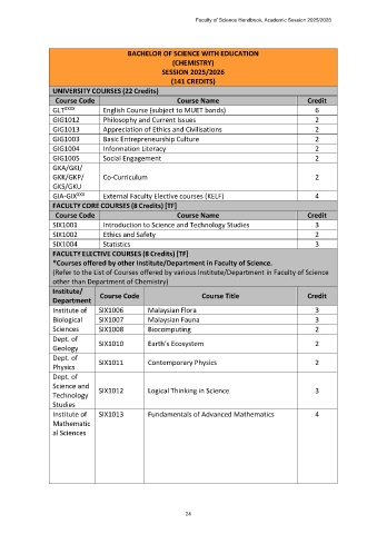 (Refer to the List of Courses offered by various Institute/Department in Faculty of Science