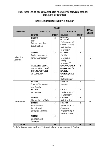 SUGGESTED LIST OF COURSES ACCORDING TO SEMESTER, 2025/2026 SESSION