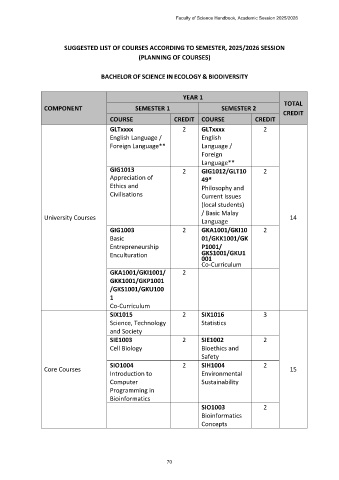 SUGGESTED LIST OF COURSES ACCORDING TO SEMESTER, 2025/2026 SESSION