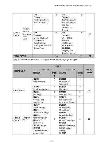 Elective Program Plant Physiology 6 SIE2017 6 12