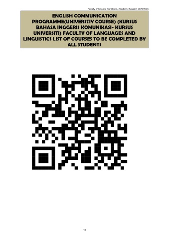 Faculty of Science Handbook, Academic Session 2025/2026 ENGLISH COMMUNICATION PROGRAMME(UNIVERSTIY COURSE) (KURSUS BAHASA INGGERIS KOMUNIKASI- KURSUS UNIVERSITI) FACULTY OF LANGUAGES AND LINGUISTICS LIST OF COURSES TO BE COMPLETED BY ALL STUDENTS 10