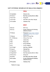 LIST OF PUBLIC HOLIDAYS IN MALAYSIA 2014/2015