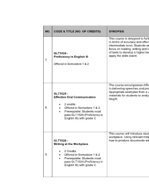 NO. CODE & TITLE (NO. OF CREDITS) SYNOPSIS LEVEL OF REQUIRED PROFICIENCY