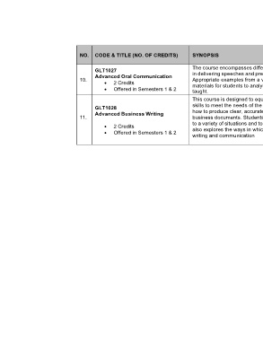 NO. CODE & TITLE (NO. OF CREDITS) SYNOPSIS LEVEL OF REQUIRED PROFICIENCY