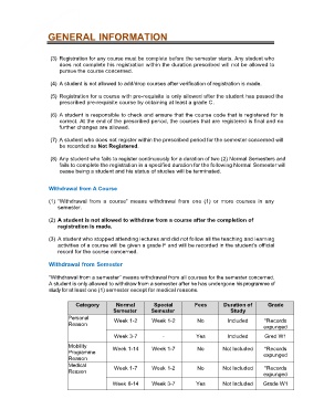 (5) Registration for a course with pre-requisite is only allowed after the student has passed the