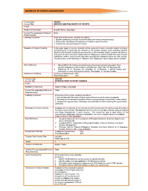 Synopsis of Course Contents Students will be exposed to the concept of sport science and the various area of studies in
