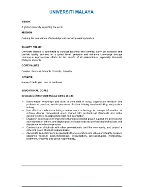 Universiti Malaya is committed to conduct teaching and learning, carry out research and