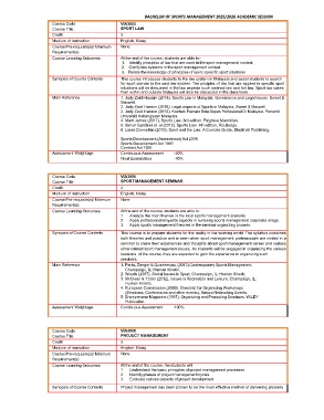 BACHELOR OF SPORTS MANAGEMENT 2025/2026 ACADEMIC SESSION