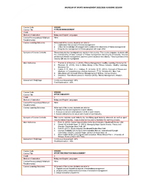 BACHELOR OF SPORTS MANAGEMENT 2025/2026 ACADEMIC SESSION