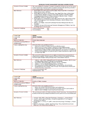 Synopsis of Course Contents This course will introduce students to the principles of weight training and preparation of