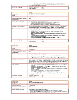 Synopsis of Course Contents This course provides students with knowledge and guidance to manage a sporting team or