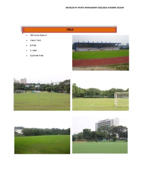 BACHELOR OF SPORTS MANAGEMENT 2025/2026 ACADEMIC SESSION FIELD UM Arena Stadium Varsiti Field B Field C Field Synthetic Field