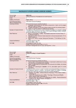 BACHELORS OF DEGREE OF SPORTS SCIENCE (EXERCISE SCIENCE)