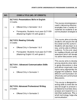 GLT1014 : Advanced Communication Skills in group discussions in diverse settings. Students will prepare