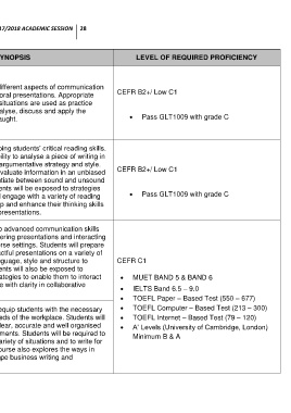 NO. CODE & TITLE (NO. OF CREDITS) SYNOPSIS LEVEL OF REQUIRED PROFICIENCY