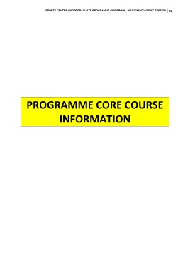 SPORTS CENTRE UNDERGRADUATE PROGRAMME GUIDEBOOK, 2017/2018 ACADEMIC SESSION 32 PROGRAMME CORE COURSE INFORMATION