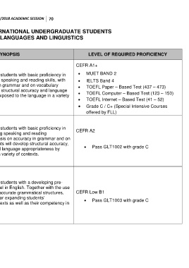 NO. CODE & TITLE (NO. OF CREDITS) SYNOPSIS LEVEL OF REQUIRED PROFICIENCY