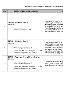 SPORTS CENTRE UNDERGRADUATE PROGRAMME GUIDEBOOK, 2017/2018 ACADEMIC SESSION 72