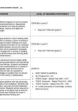 NO. CODE & TITLE (NO. OF CREDITS) SYNOPSIS LEVEL OF REQUIRED PROFICIENCY