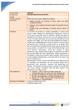 Course Title VALUES AND ETHICS IN SPORT