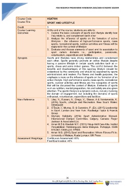 Course Title SPORT AND LIFESTYLE
