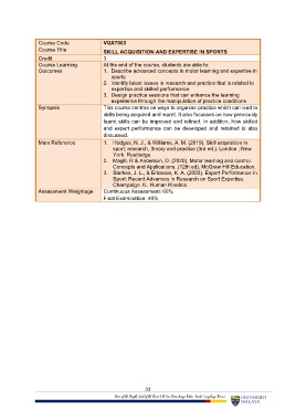 Course Title SKILL ACQUISITION AND EXPERTISE IN SPORTS