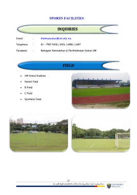 Facebook : Bahagian Kemudahan & Perkhidmatan Sukan UM