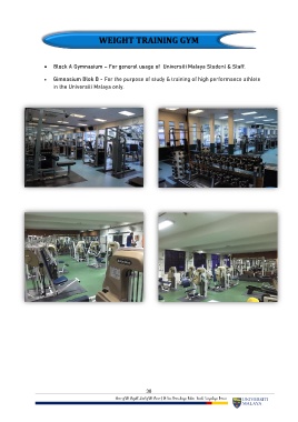 • Block A Gymnasium – For general usage of Universiti Malaya Student & Staff.