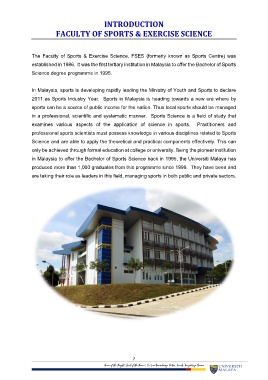 in Malaysia to offer the Bachelor of Sports Science back in 1995, the Universiti Malaya has
